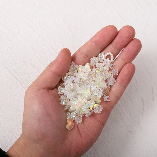 100PCS Mixed Design 3D Arcylic Nail Art Decorations Charms Kawaii Accessories Black White Aurora Bow Tie Heart Manicure Parts
