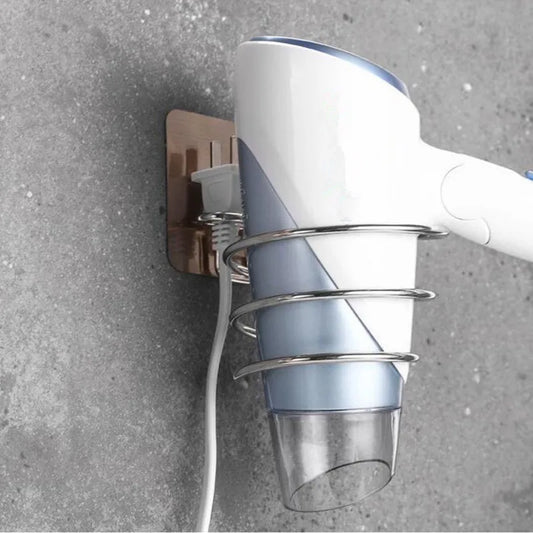 Hair Dryer Holder Blower Organizer Adhesive Wall Mounted Nail Free No Drilling Stainless Steel Spiral Stand For Bathroom