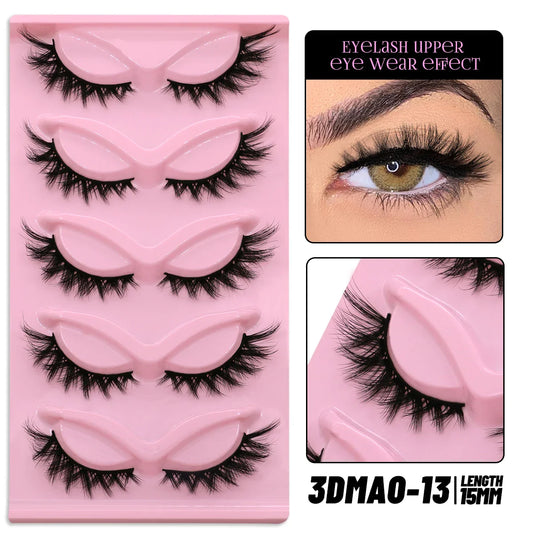 GROINNEYA 5 pairs Cat Eye Lashes Faux Mink Eyelashes Clear Band Lashes Natural Look Wispy Mink Eyelashes Full Strip Lashes